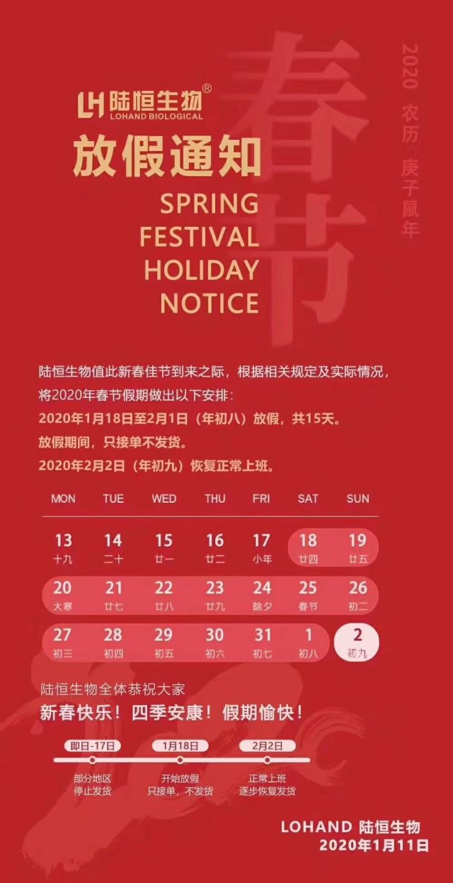 始正式放假,2020.01.17 起停止发货,正常