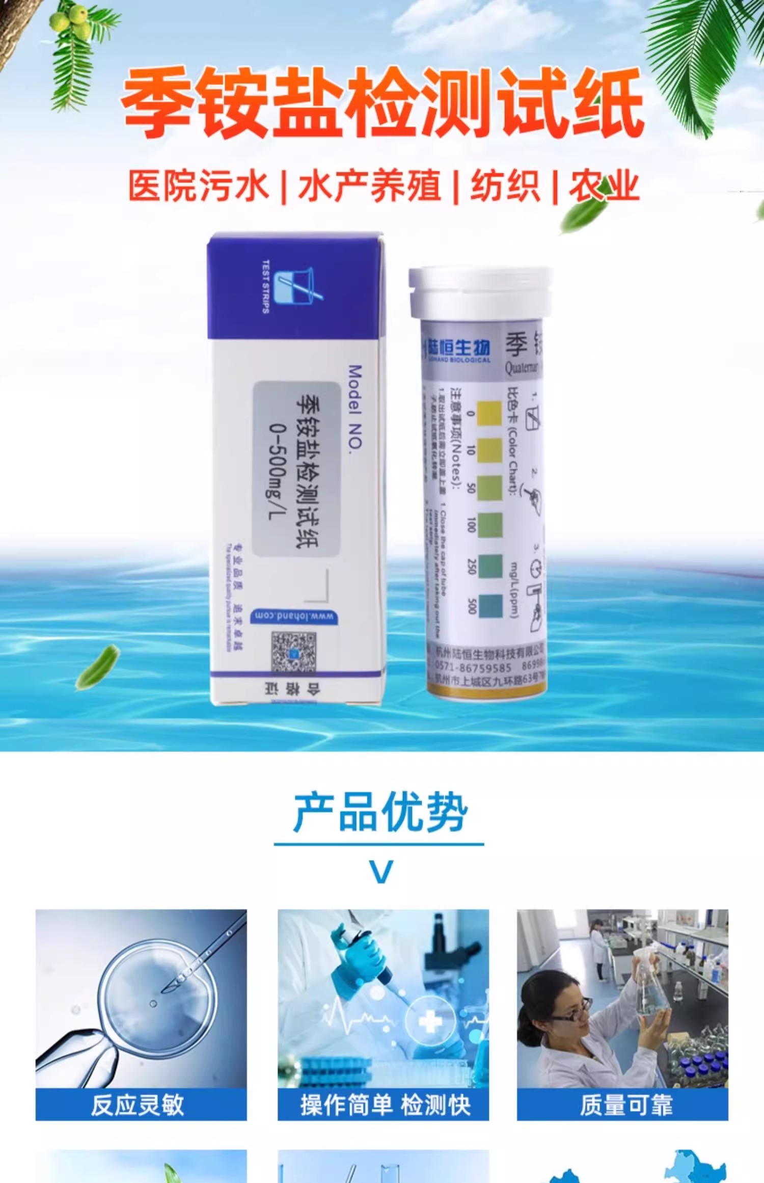 陆恒生物季铵盐检测试纸表面活性剂器械季铵盐消毒残留分析测试条